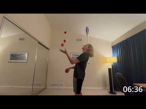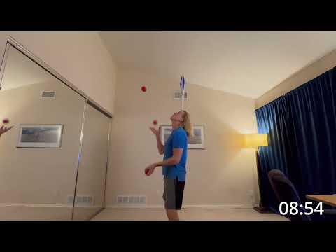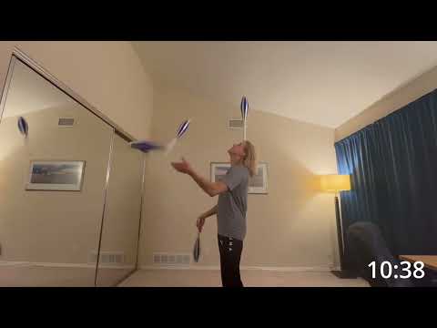 3 club cascade in singles with a club balanced on the head, 19m 47s of