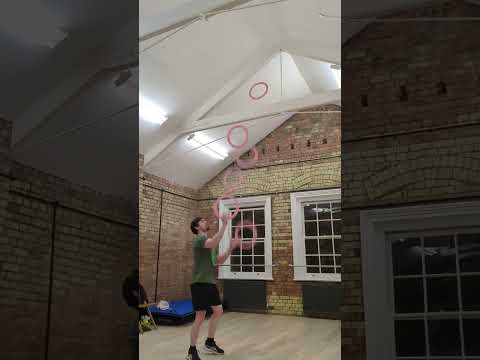 4 ball (4,4) with a club balanced on the head, 500 catches of